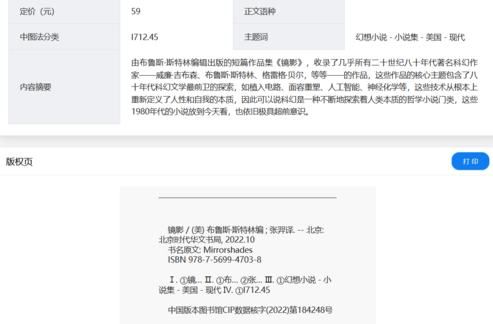 #新書消息 #陆版 #科幻小說 镜影 / (美) 布鲁斯·斯特林编 ; 张羿译. -- 北京:北京时代华文书局, 2022.10 书名原文: Mirrorshades ISBN 978-7-5699-4703-8 Ⅰ. ①镜… Ⅱ. ①布… ②张… Ⅲ. ①幻想小说-小说集-美国-现代 Ⅳ. ①I712.45 中国版本图书馆CIP数据核字(2022)第184248号
