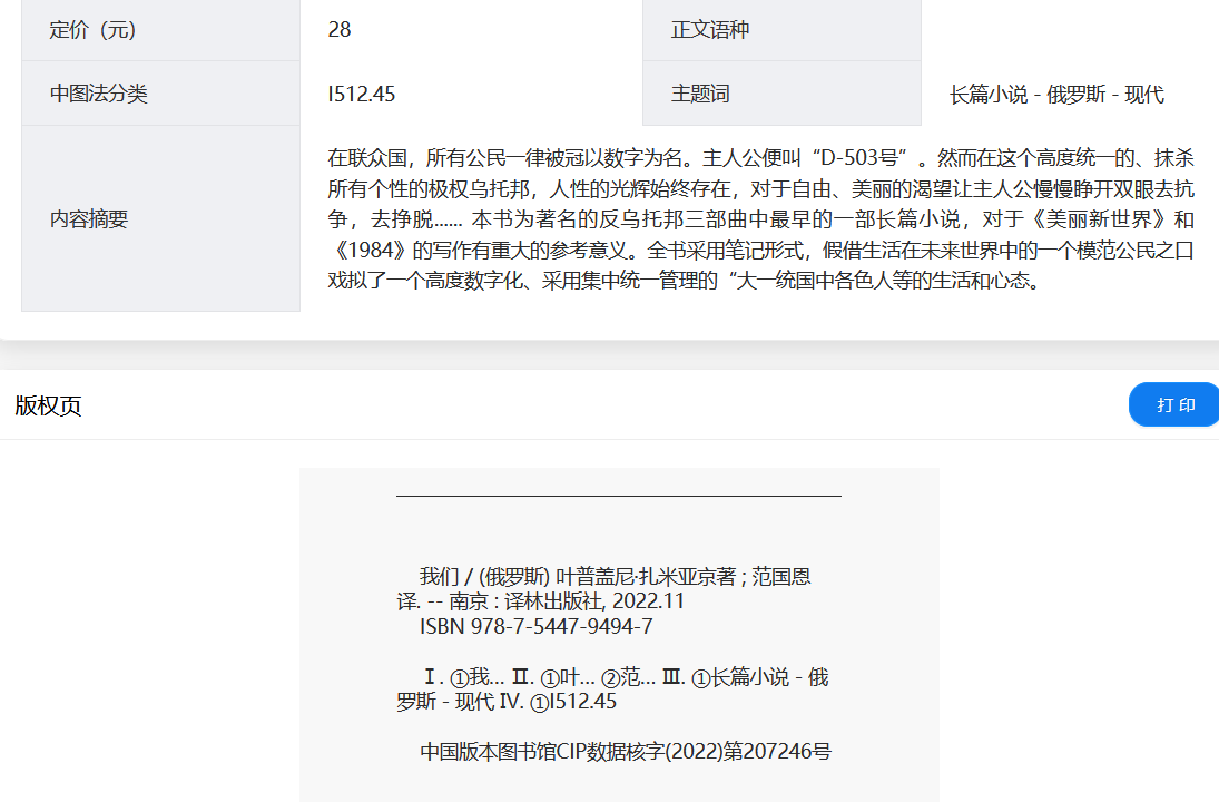 #新書消息 #陆版 #反烏托邦我们 / (俄罗斯) 叶普盖尼·扎米亚京著 ; 范国恩译. -- 南京 : 译林出版社, 2022.11 ISBN 978-7-5447-9494-7 Ⅰ. ①我… Ⅱ. ①叶… ②范… Ⅲ. ①长篇小说-俄罗斯-现代 Ⅳ. ①I512.45 中国版本图书馆CIP数据核字(2022)第207246号