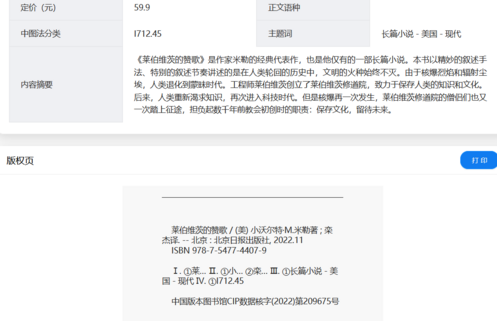 #新書消息 #陆版 莱伯维茨的赞歌 / (美) 小沃尔特·M.米勒著 ; 栾杰译. -- 北京 : 北京日报出版社, 2022.11 ISBN 978-7-5477-4407-9 Ⅰ. ①莱… Ⅱ. ①小… ②栾… Ⅲ. ①长篇小说-美国-现代 Ⅳ. ①I712.45 中国版本图书馆CIP数据核字(2022)第209675号