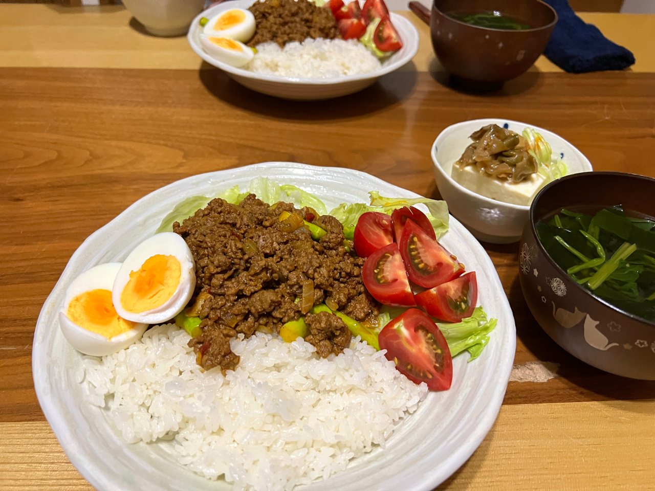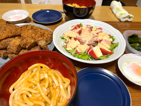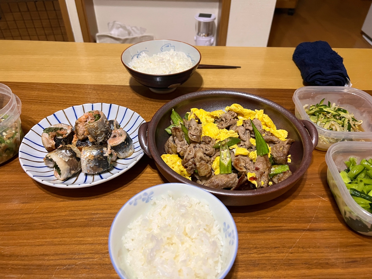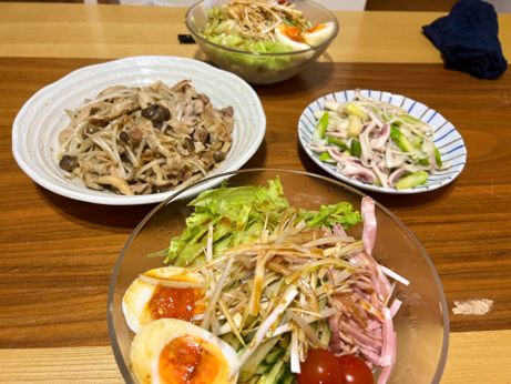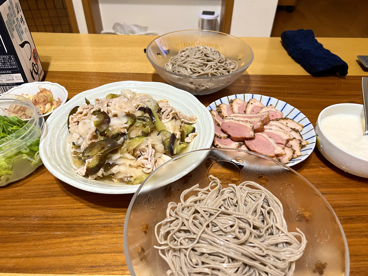茹で豚と茹でナスとピーラーでピャーピャーした大根をおろし生姜と白だしとごま油とラー油でうまいことやったやつ