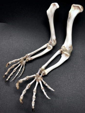 東レプで食べて薬品で肉を溶かしてグルーガンで接着してこうなりました 指によって骨の数が違ったり、薬指と小指には爪が無かったりするのが面白いですね #骨