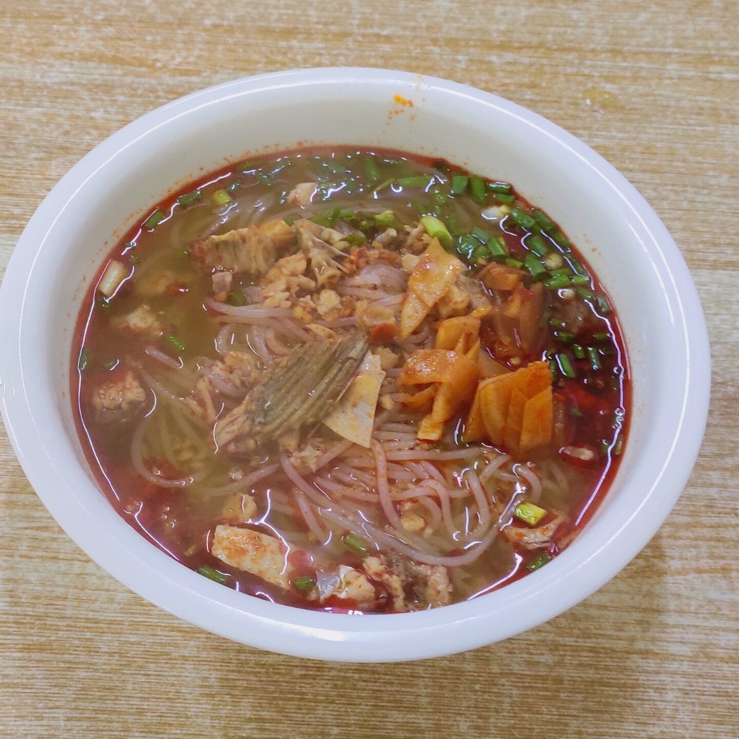 今天跑到车站去吃鱼粉,好便宜才五块钱。粉可以,汤不行太清了,酸菜好吃😋综合考虑,下次不会来了。我去的时机不太巧,前一个人刚好夹完了所有的海带丝。我犹豫了一秒,端着碗走了。没想到才嗦了两口粉,老板娘不知道从哪窜出来给我夹了一筷子海带丝,妈耶,服务真好 :blob_cat_innocent:#鱼粉