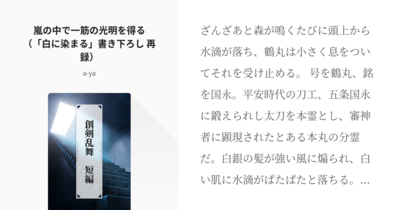 嵐の中で一筋の光明を得る(「白に染まる」書き下ろし 再録) | a-ya #pixiv https://www.pixiv.net/novel/show.php?id=17362256 #鶴さに