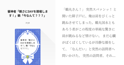 審神者「鶴さにDAYを開催します!」鶴「今なんて???」 | a-ya #pixiv https://www.pixiv.net/novel/show.php?id=19230838 #鶴さに