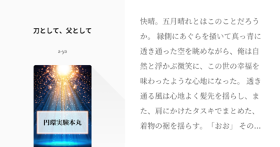 刀として、父として | a-ya #pixiv https://www.pixiv.net/novel/show.php?id=19325729 #鶴さに
