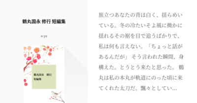 鶴丸国永 修行 短編集 | a-ya #pixiv https://www.pixiv.net/novel/show.php?id=19372180 #鶴さに
