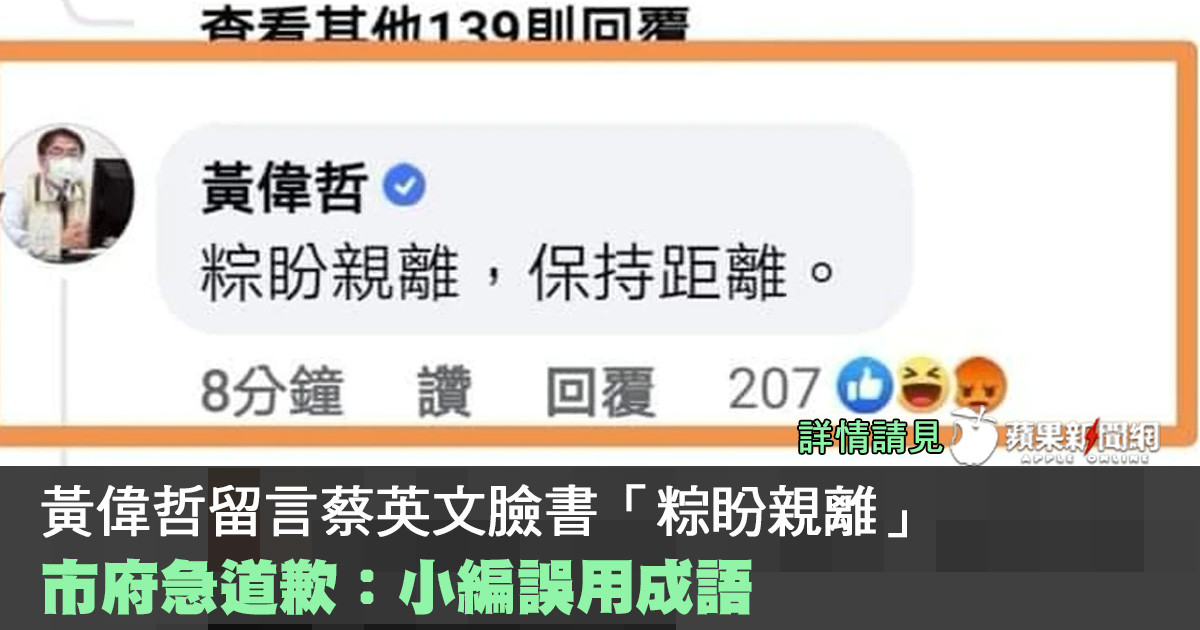 #蘋果新聞網 #appledaily #appledailytw #黃偉哲 #小編 #蔡英文 #facebook