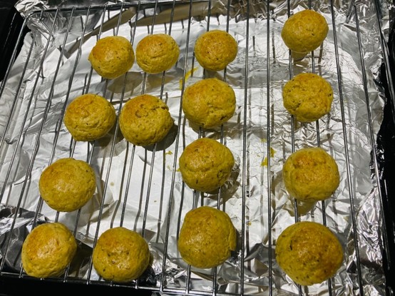 先烤了点迷你司康准备起来!里面有马德拉咖喱粉、芝麻酱、切达奶酪和意大利混合香草碎,明天切对半加上一点有小红莓的 Wensleydale 奶酪再烤一会。不过马德拉咖喱粉有点辣,我觉得要把计划里点缀的蘑菇换成杏干或者奇异果会更平衡。