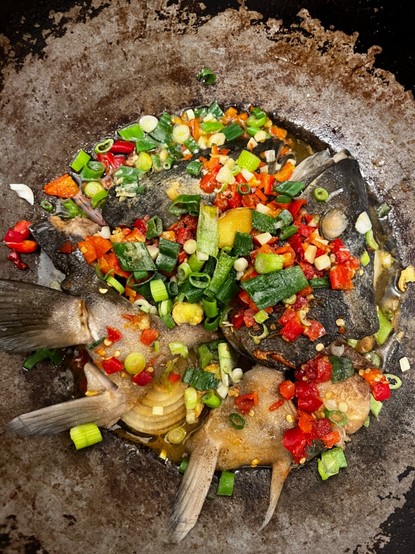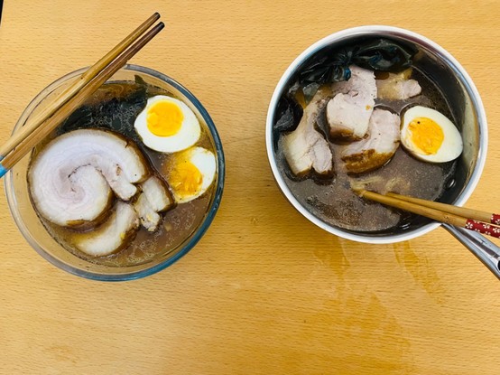 吃了 :0180: 小火山来我家那天我们制作了速成叉烧拉面(放了海带结和木耳,面条是小火山和面切的)。第二天请象友们吃饭了,酥皮面皮在冰箱里冻脆了导致三文鱼威灵顿形状不大好看,但是味道还是很好。雪梨肉丸汤白胡椒粉放多了,但是/我打的肉丸/是这个岛上/最好吃的(划掉)。青椒炒荷包蛋拆骨肉、芋儿烧鸡和茼蒿大受好评。小火山做了柠檬芝士蛋糕当甜点,师太带了芒果海盐椰浆糯米饭 :ablobcatheartsqueeze:
