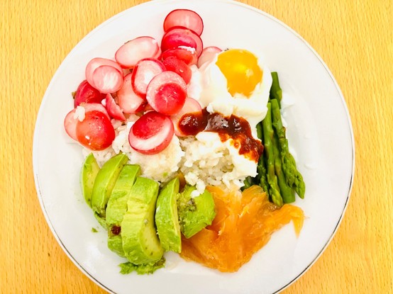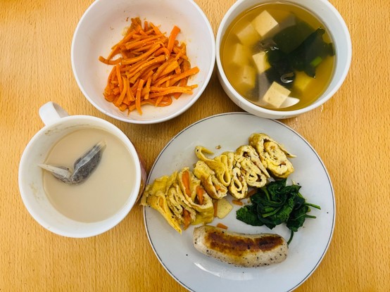 昨天睡前看了太多日本人做饭今天起来就做了一个……呃有日本早餐影响的早餐?汤用的是韩国大酱因为家里只有这个,拌胡萝卜用的是芝麻油和辣酱油(worcester sauce),此外还吃了一片自己烤的面包因为我没有煮好的冷米饭可以做饭团……