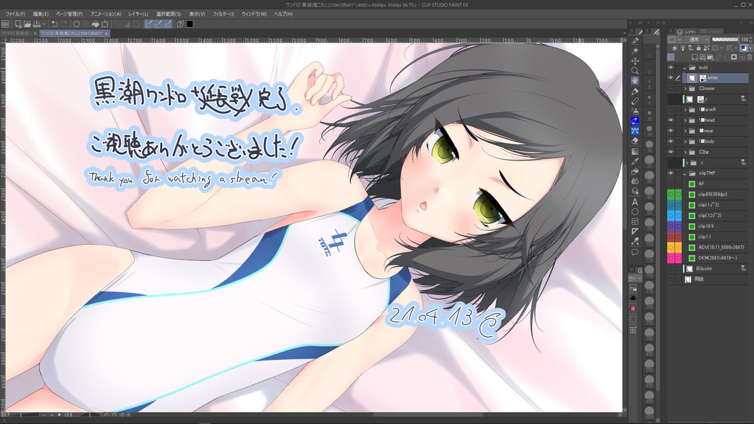 #pixivsketch #競泳水着 #水着艦娘 #黒潮 #艦これ #艦これ版真剣お絵描き60分一本勝負_20210413 #艦これ版深夜の真剣お絵描き60分一本勝負