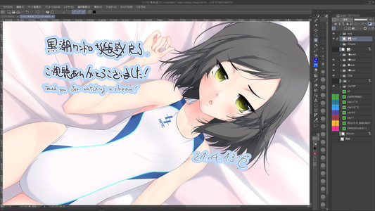 #pixivsketch #今日のライブ進捗 #競泳水着 #水着艦娘 #黒潮 #艦これ