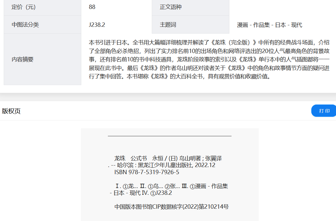 #新書消息 #陸版 #龍珠 龙珠 公式书 永恒 / (日) 鸟山明著 ; 张翼译. -- 哈尔滨 : 黑龙江少年儿童出版社, 2022.12 ISBN 978-7-5319-7926-5 Ⅰ. ①龙… Ⅱ. ①鸟… ②张… Ⅲ. ①漫画-作品集-日本-现代 Ⅳ. ①J238.2 中国版本图书馆CIP数据核字(2022)第210214号