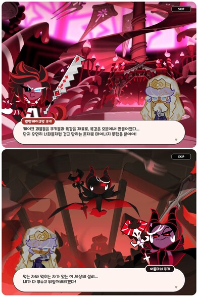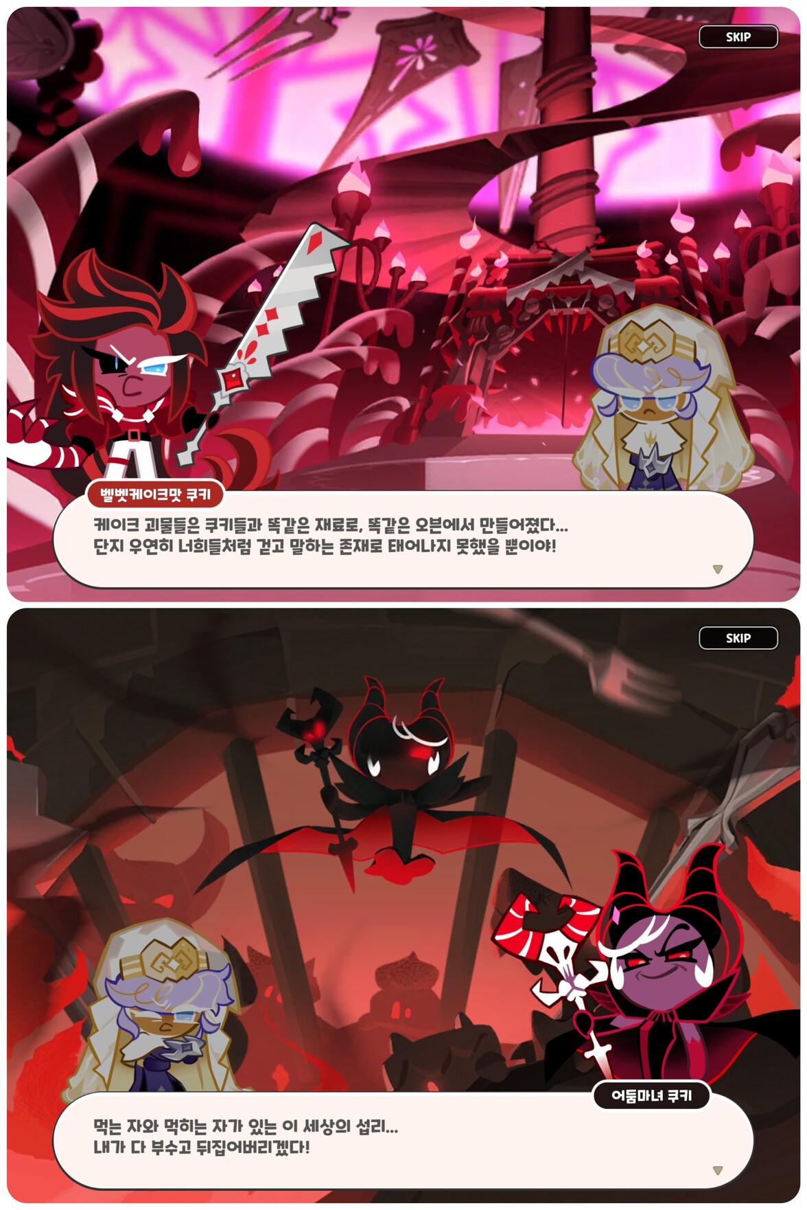 혼돈의 케이크 타워 스토리를 보고 있는데 벨벳케이크맛 쿠키가 너무 스윗하다. #쿠킹덤