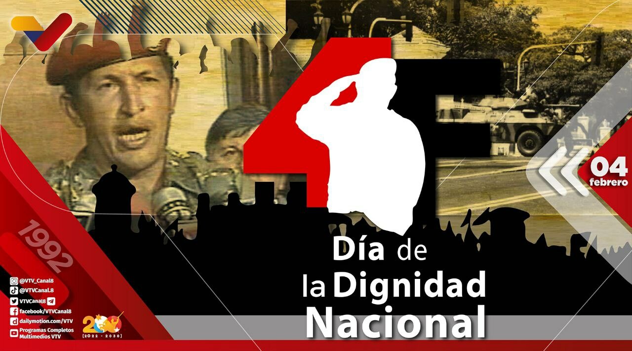 #EFEMÉRIDE🗓️| El pueblo venezolano, con conciencia patriótica, conmemora este #04Feb como el Día de la Dignidad Nacional, cuando en 1992, un hombre alzó la voz de millones e inscribió en la historia el rumbo político del país con su ideario Bolivariano.
