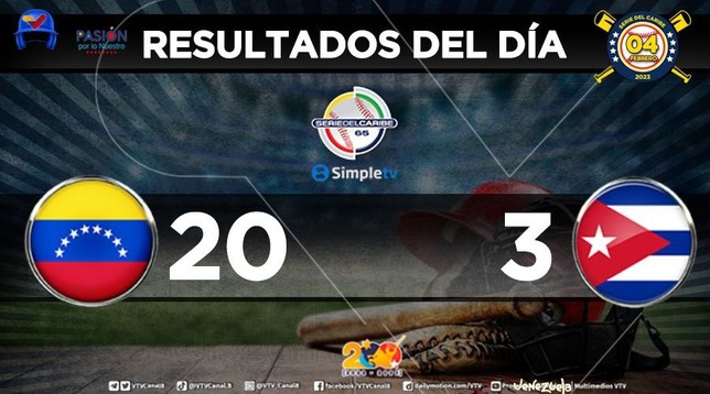 #SerieDelCaribe2023⚾️| Venezuela 🇻🇪 deja en el terreno de juego a Cuba 🇨🇺 con un marcador de 20 a 3, para cerrar la jornada de este #04Feb del béisbol caribeño en su edición Gran Caracas 2023.