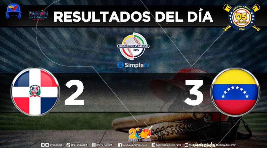 #SerieDelCaribe2023⚾️| Venezuela 🇻🇪 deja en el terreno de juego a República Dominicana con un marcador de 3 a 2, para cerrar la jornada de este #05Feb del béisbol caribeño en su edición Gran Caracas 2023.