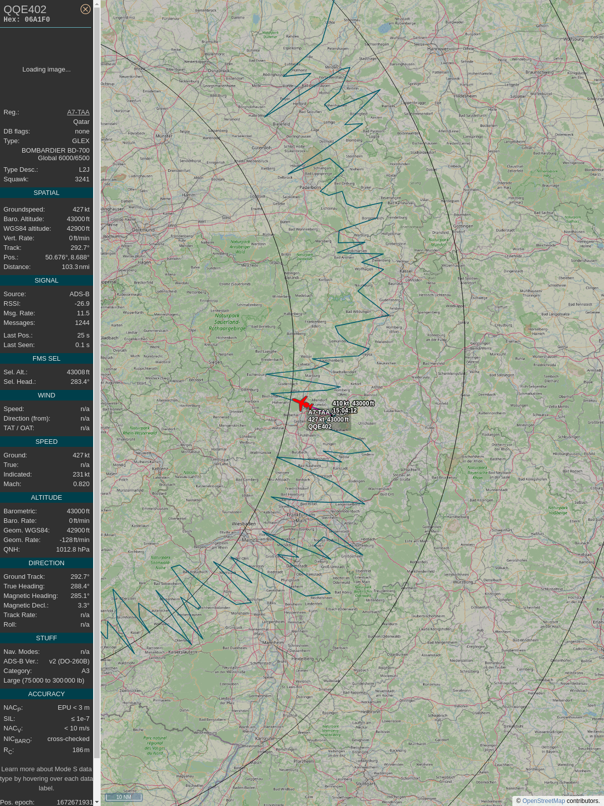 #PlaneAlert ICAO: #06A1F0 Tail: #A7TAA Flt: #QQE407