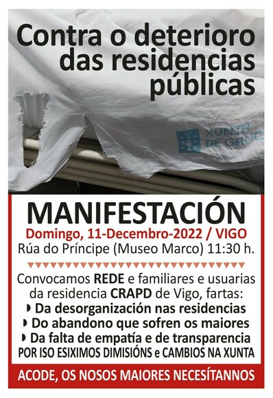 📣📆 #11D #Vigo | Concentración contra o deterioro das residencias públicas e contra a desorganización, abandono dos maiores e falta de empatía e transparencia no complexo residencial CRAPD.