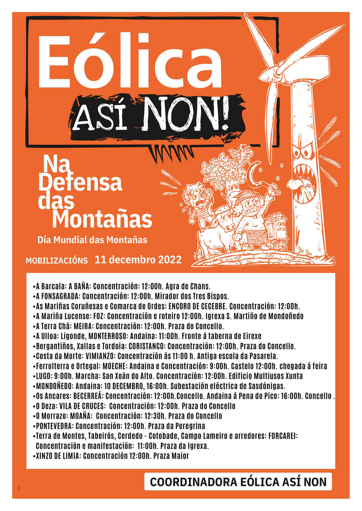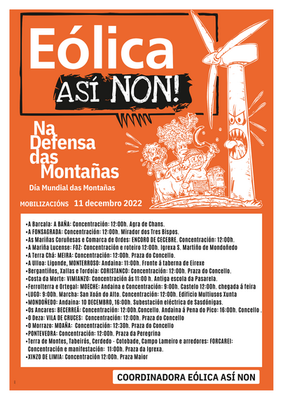 Convoca a Coordinadora “Eólica así non!” e decenas de organizacións sociais, ecoloxistas e de veciños.