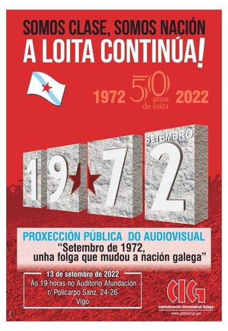 📣📆 #13S #Vigo | Proxección do audiovisual ‘Setembro de 1972, unha folga que mudou a nación galega’.
