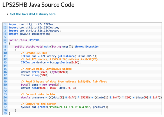 Thanks #14core to include a Java code example for your ST #LPS25HB / #LPS331AP Pressure, Barometer MEMS Sensor, using the Pi4J library!