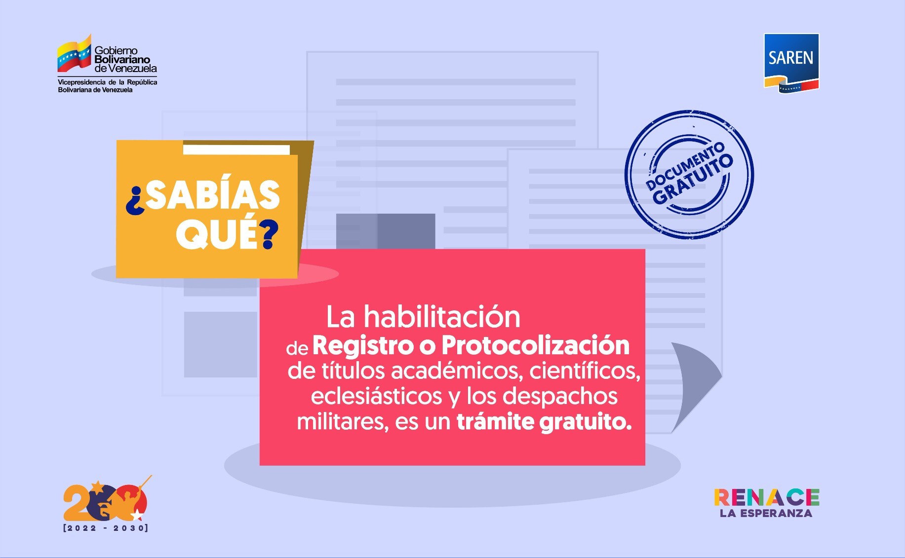 #SabíasQué 👉 La habilitación de Registro o Protocolización de títulos académicos, científicos, eclesiásticos y los despachos militares, es un trámite gratuito.