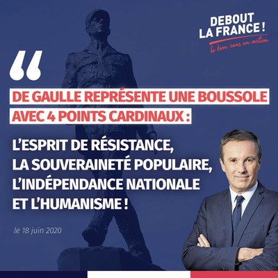 #18juin1940 : 80 ans après son appel, le Général de Gaulle incarne plus que jamais cette boussole aux quatre points cardinaux : l’esprit de résistance, la souveraineté populaire, l’indépendance nationale et l’humanisme ! 🇫🇷