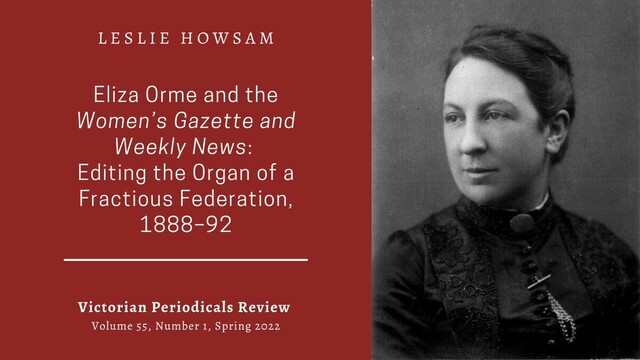 Leslie Howsam traces the development and demise of the Women’s Gazette and Weekly News, which documented the work of the Women’s Liberal Federation. Read more about the #19thc #periodical as political organ in the latest issue of VPR: https://muse.jhu.edu/pub/1/article/871166
