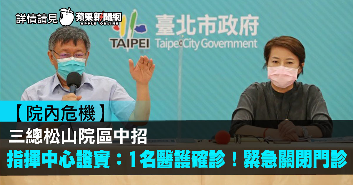 【院內危機】三總松山院區中招 指揮中心證實:1名醫護確診!緊急關閉門診