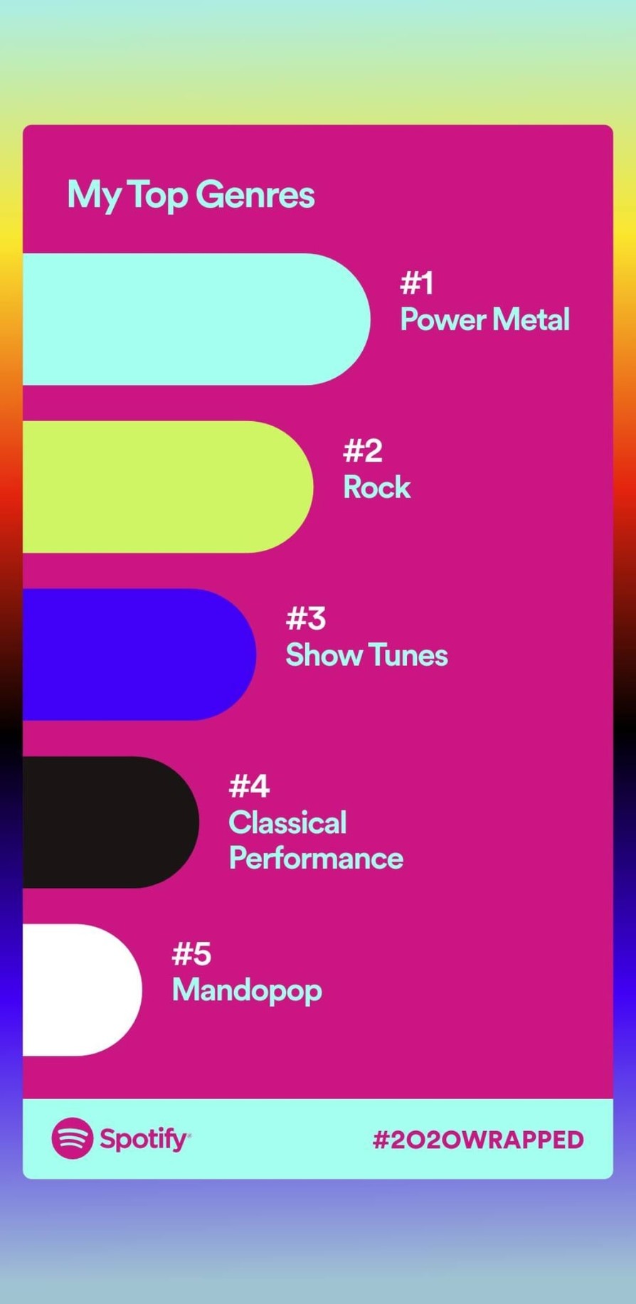 This is how my year sounded on @Spotify. Get your 2020 Wrapped now #2020Wrapped https://open.spotify.com/wrapped/share-9aa473fc4bf6452084a1cfc51bda2e15-1080x1920?lang=en&si=HZXM9HBnQr-eeFXKF22Zxg 😎