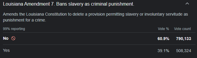 @SparrowGray2@twitter.com @hasansstache@twitter.com @amber_a_bi@twitter.com I was gonna find a cool ballot measure and say that you at least helped to get that past but y'all can't even ban slavery