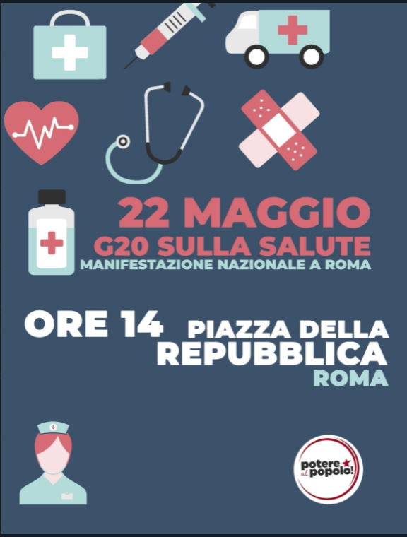 Il 22 Maggio una grande manifestazione dopo molti mesi. Il G20 della salute sarà in Italia, a Roma. E' molto importante esserci per ribadire il nostro concetto di salute pubblica e gratuita per tutti, necessaria, essenziale.