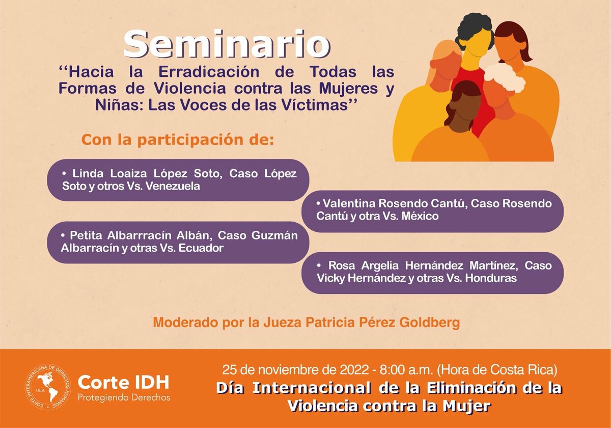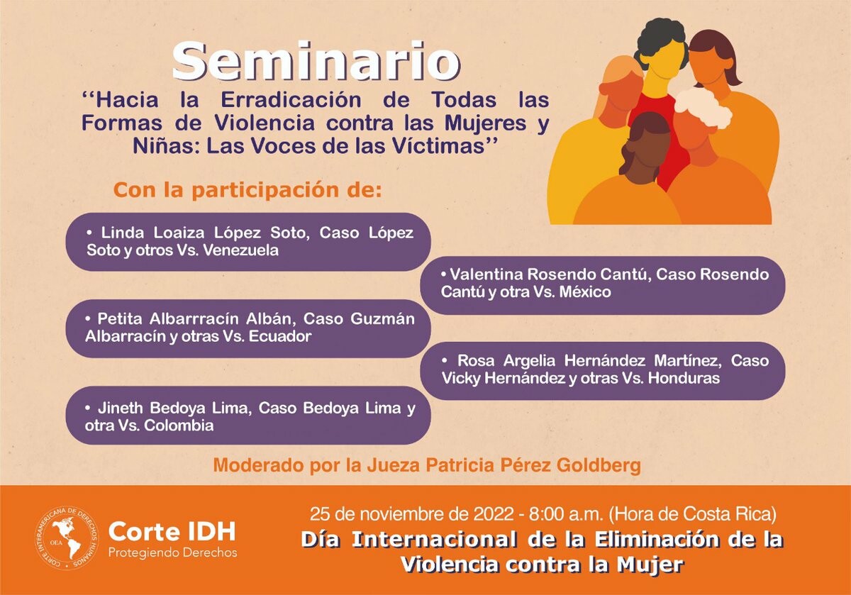 #25deNoviembre No te pierdas la oportunidad de participar en el Seminario: "Hacia la Erradicación de Todas las Formas de Violencia contra las Mujeres y Niñas: Las Voces de las Víctimas", organizado por la Corte IDH.