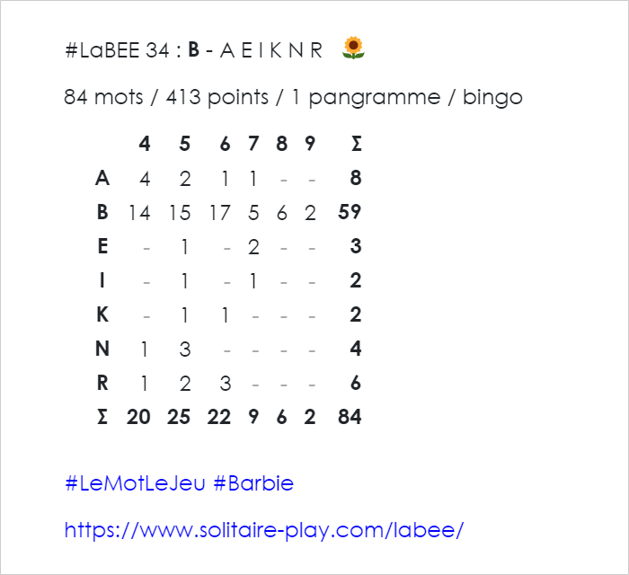 #LaBEE 34 : B - A E I K N R 🌻