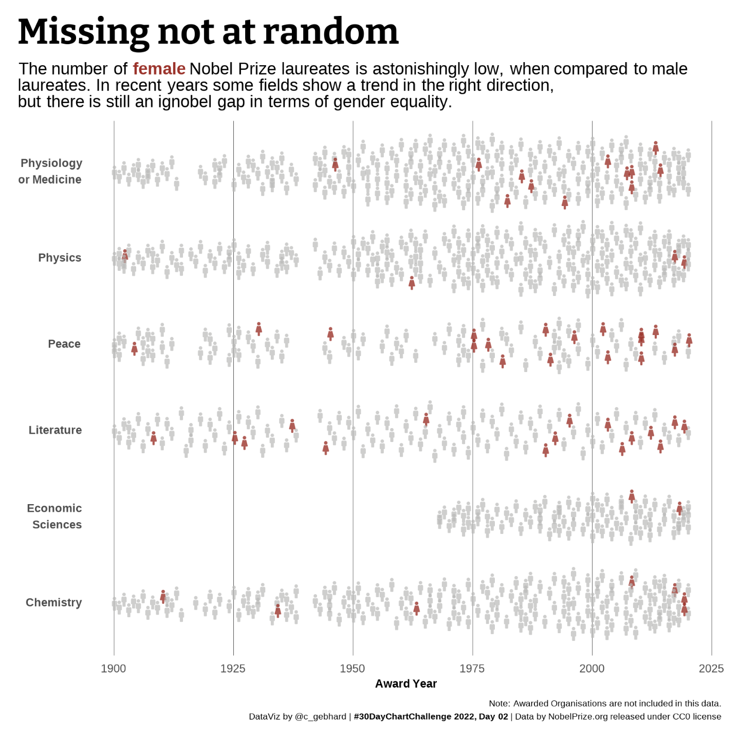 #dataviz #datavis #gendergap #genderinequality #nobelprize #rstats #day2 #30DCCNov22Reposts #30DayChartChallenge