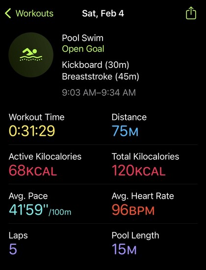 (An error on 2nd pic activity summary, pool length supposed to be 15m so probably summary is not correct at all. Also I only did 5 laps)