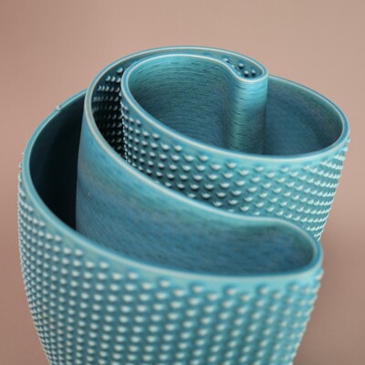 Still obsessed with printing spiral vases in porcelain. Designed in #grasshopper. #3Dprinted #ceramics
