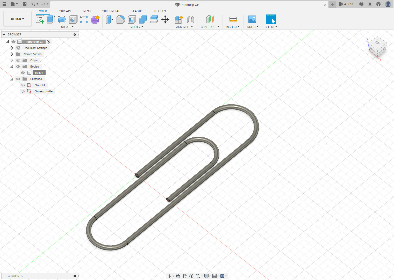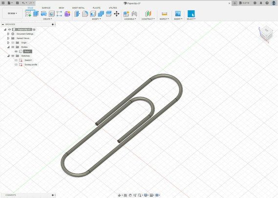 Third #fusion360 exercise: a paperclip, a simple object with a thousand uses... Using the Tangent Arcs, Construction lines and Sweep tools. #3Dprinting #3Dbeginners #cad