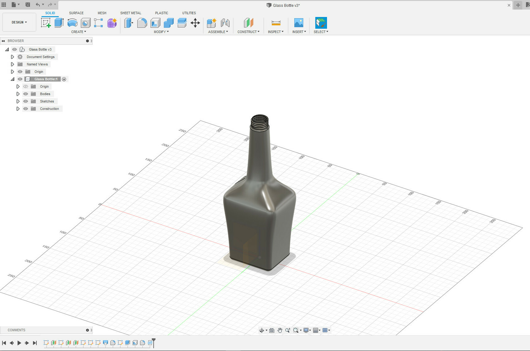 Fourth #fusion360 exercise: a glass bottle with a top thread. 3D design using the Offset Planes, Loft and Guide Rails tools. #3Dprinting #3Dbeginners #cad