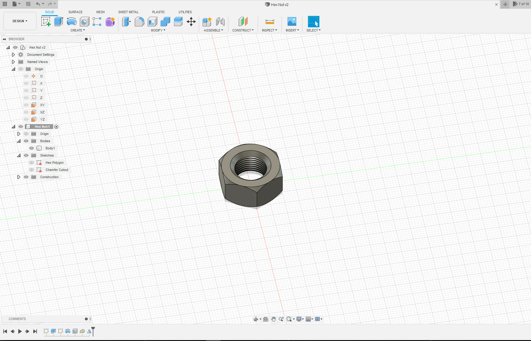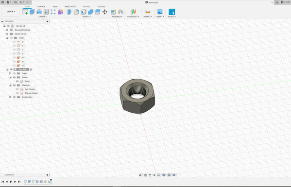 Sixth #fusion360 exercise: a Hex Nut. 3D design using the Circumscribed Polygon, Hole, Midplane Construction Plane and Mirror tools. #3Dprinting #3Dbeginners #cad