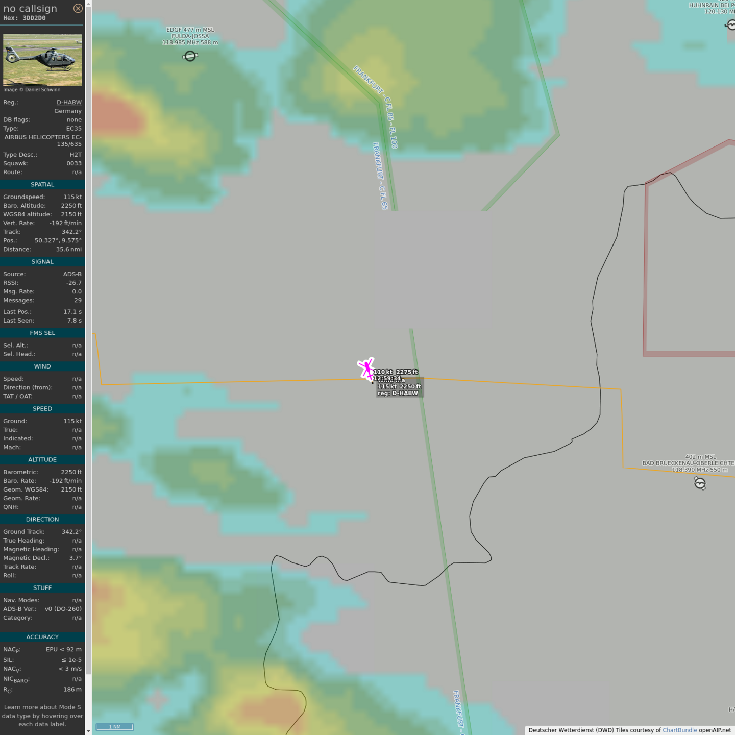 #PlaneAlert ICAO: #3DD2D0 Tail: #DHABW #Squawk: #0033