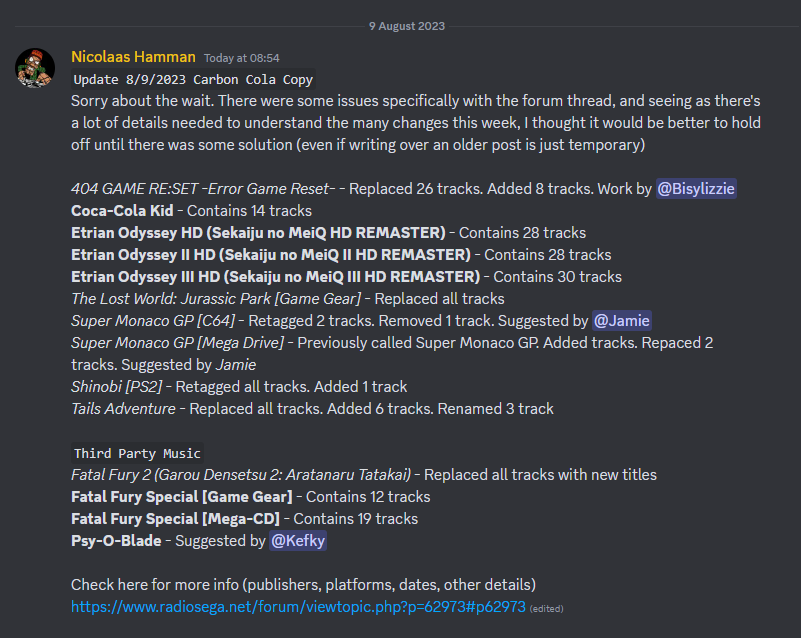 Latest @RadioSEGA Playlist Update from 10 July 2023 (yeah I'm doing these on Mastodon now too)