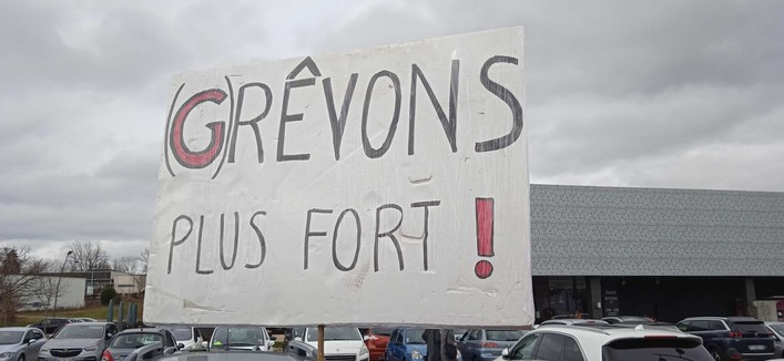 1/3 Le 22 mars à 6h SOLIDAIRES et FO ont mené une opération de tractage au rond-point de Chemaudin (#besancon).