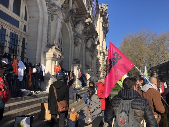 Dépôt de vêtements usés par le travail à #Tours, action réalisée ce 05/04 par l'intersyndicale.