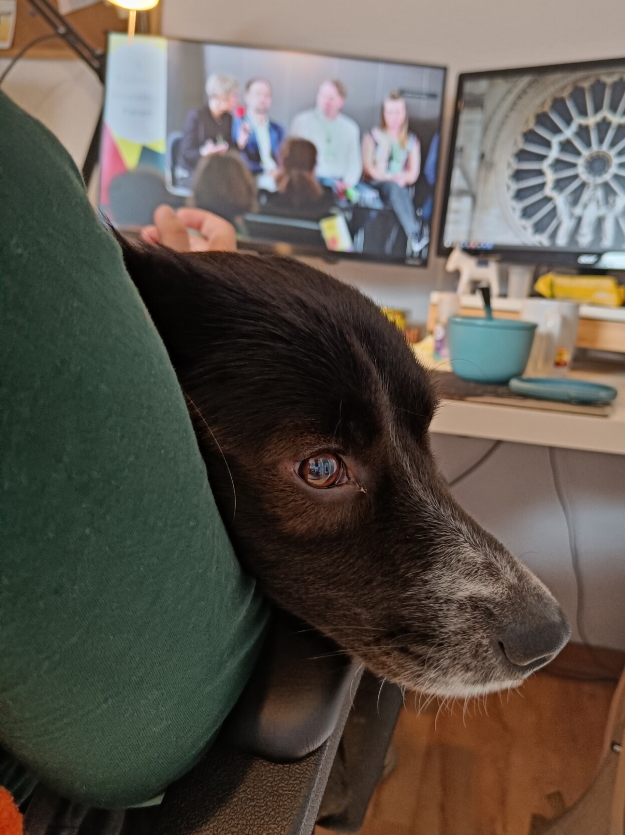Heute Nachmittag digital dabei beim #4culturecommunityplenary 😍 Der Semantic Kompakkt Workshop heute morgen war wie immer klasse! *nicht mehr Hund streichelnd gesendet, da er schläft*