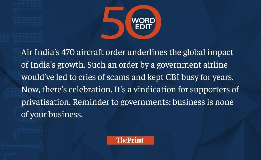 New headline is Air India's new order a reminder to the government — business is none of your business