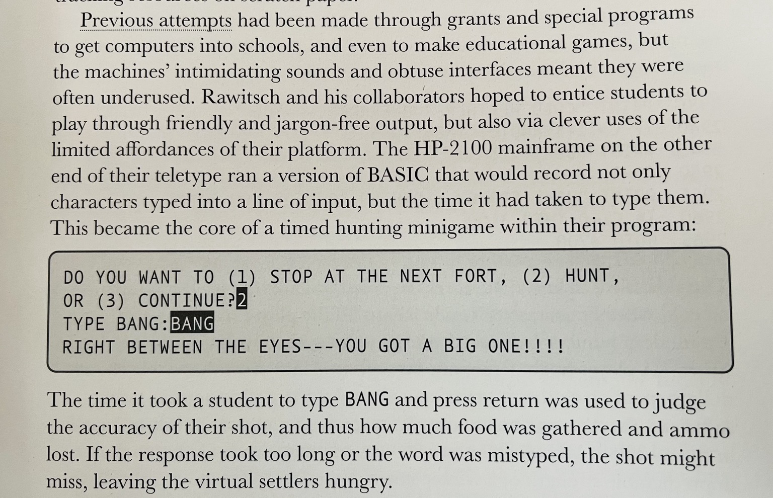 Had not seen this mechanic before. It’s from the original Oregon Trail written in BASIC, which despite a great local reception in 1971 was almost lost to the wind. #50YearsOfTextGames
