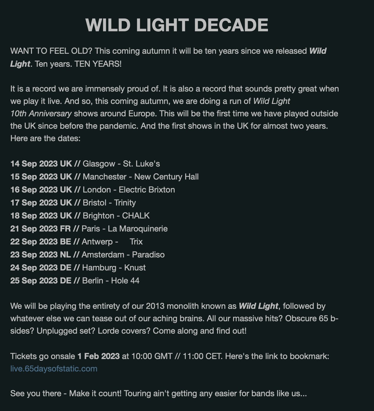 Glad to see #65dos out on the road again later this year, but saddened to see the increasingly regular lack of Midlands dates. Nothing between Manchester and London/Bristol 😟