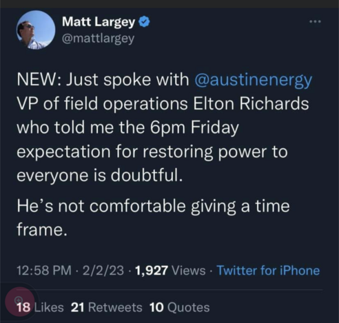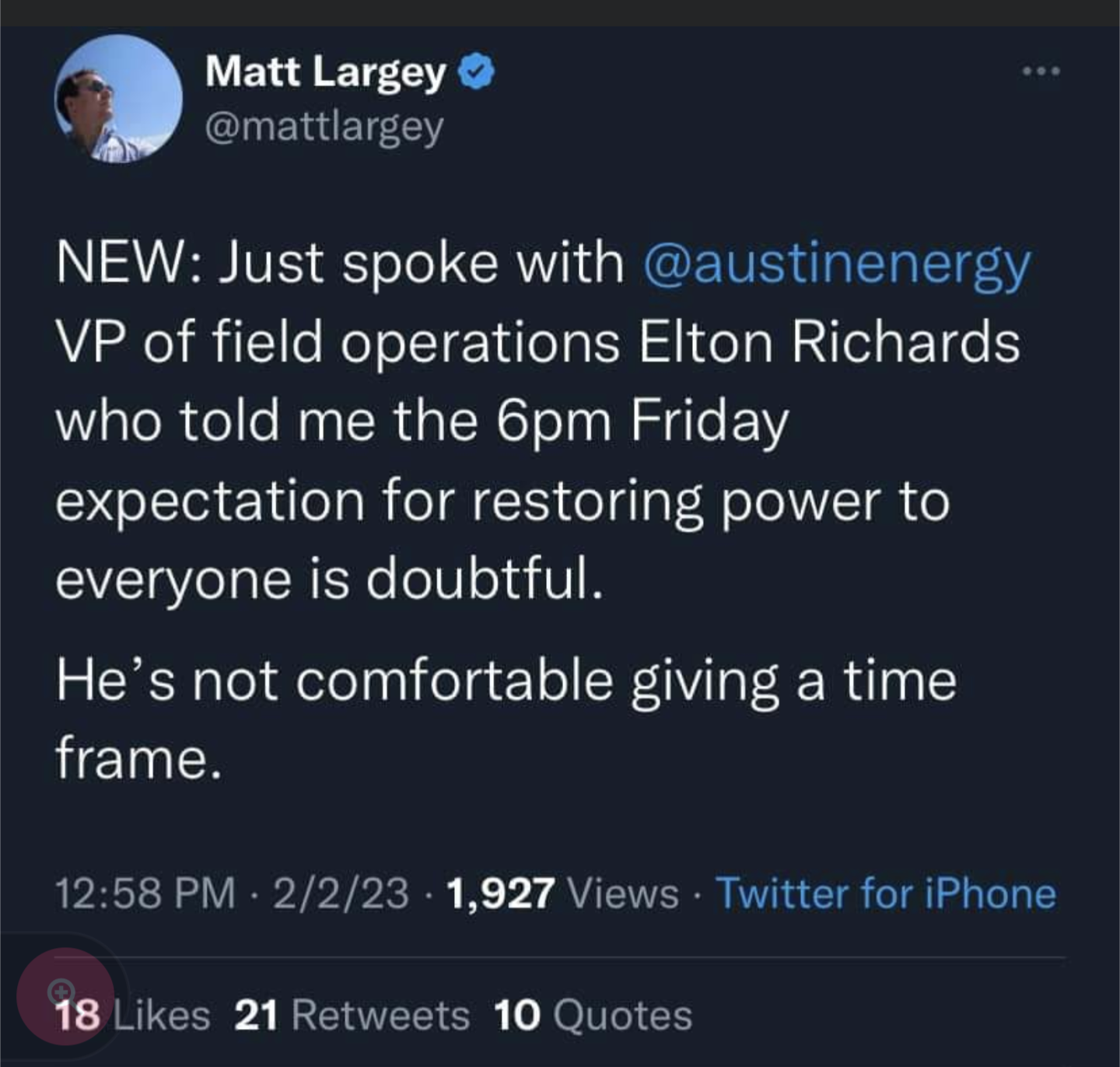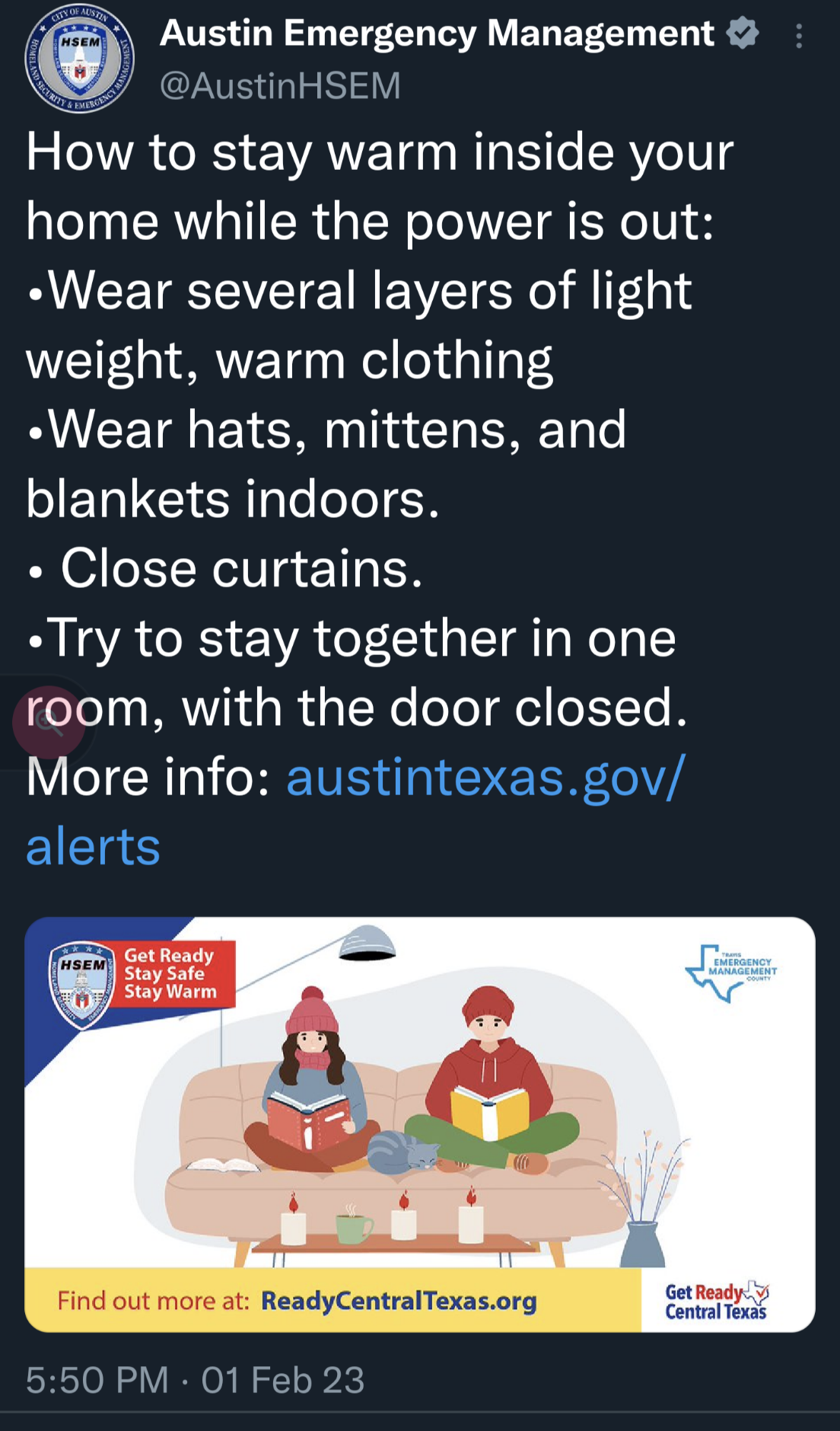Meanwhile, Austin Energy has this post-ice storm advice for the next couple of days. #atxwx #atx #austin